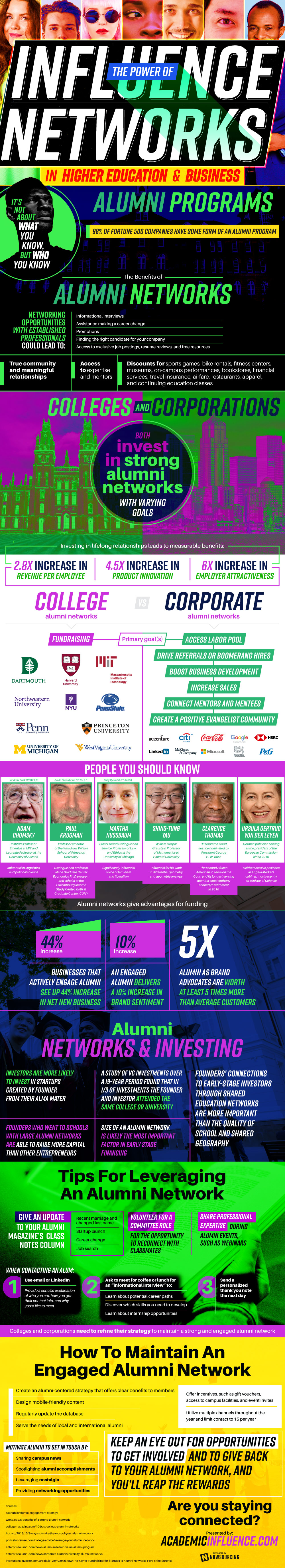 Alumni networks in both higher education and business work as invaluable resources for building social capital and discovering valuable opportunities (both academic and professional).